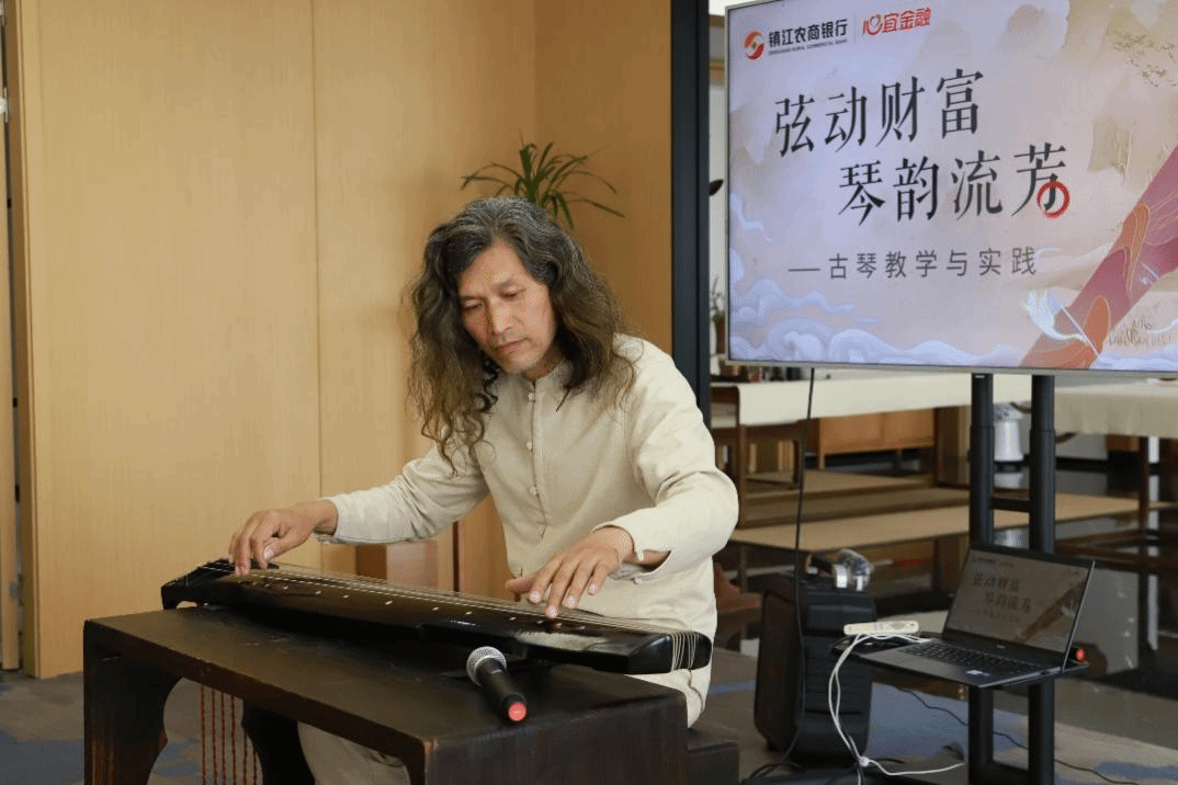 为深化美育实践内涵,弘扬中华优秀传统文化,促进古琴艺术在校园的传播与传承,4月11日,财经学院组织学生前往镇江农商行,开展“弦动财富·琴韵流芳”古琴教学实践活动。活动特邀镇江市非物质文化遗产(斫琴项目)传承人蔡伟先生及其夫人陈晓燕老师担任主讲,通过讲解、演奏与体验相结合的方式,带领学生深入感受古琴艺术的魅力。