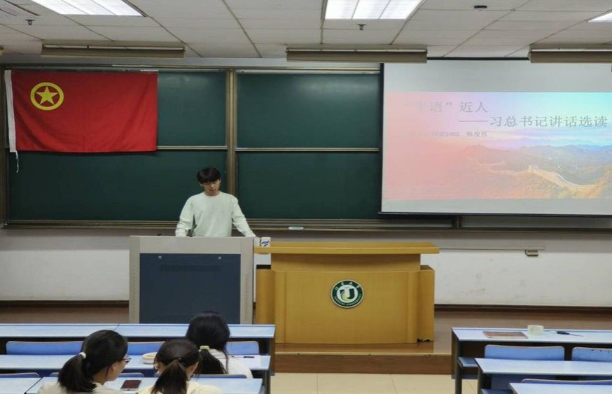 本次活动以主题分享的形式展开,四组同学分别以“习近平总书记重要讲话精神解读”、“乡村振兴”、“团史团情教育”和“五四精神”为主题进行分享。主讲同学从不同角度阐述了乡村振兴的政策背景、实施路径、基层案例等维度,系统解读了新时代“三农”工作的战略意义。随后,通过分享“我将无我,不负人民”、“绿水青山就是金山银山”等金句的时代内涵,结合脱贫攻坚、生态治理等典型案例,让青年学子深刻感受领袖话语中的人民情怀与历史担当。活动最后播放的《觉醒年代》五四运动专题纪录片,通过历史影像与青年学子访谈的跨时空对话,生动诠释了“爱国、进步、民主、科学”的五四精神内核。