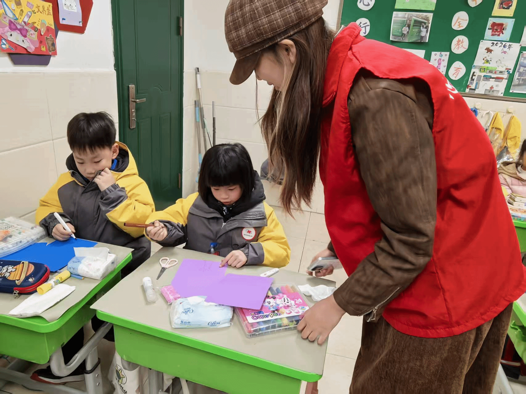 活动中,志愿者们以春日美景分享、经典春日诗词品读为切入点,用生动有趣的互动快速拉近与孩子们的距离,轻松活跃的现场氛围瞬间拉满。手工材料分发完毕后,孩子们满怀期待、跃跃欲试,稚嫩的脸庞上满是对创作的向往。志愿者采用“分步示范+一对一精准指导”的教学模式,手持成品范例,细致演示超轻黏土揉、捏、粘、塑的基础技巧,将原本复杂的制作流程,拆解为塑形树干、制作叶片、创意拼贴装饰等简单易懂的小步骤,放慢教学节奏逐一讲解示范,确保每一位孩子都能看清细节、轻松上手。面对孩子们的疑问与创作难题,志愿者们俯身耐心倾听,手把手进行教学指导,不断鼓励孩子们打破常规、大胆创作。