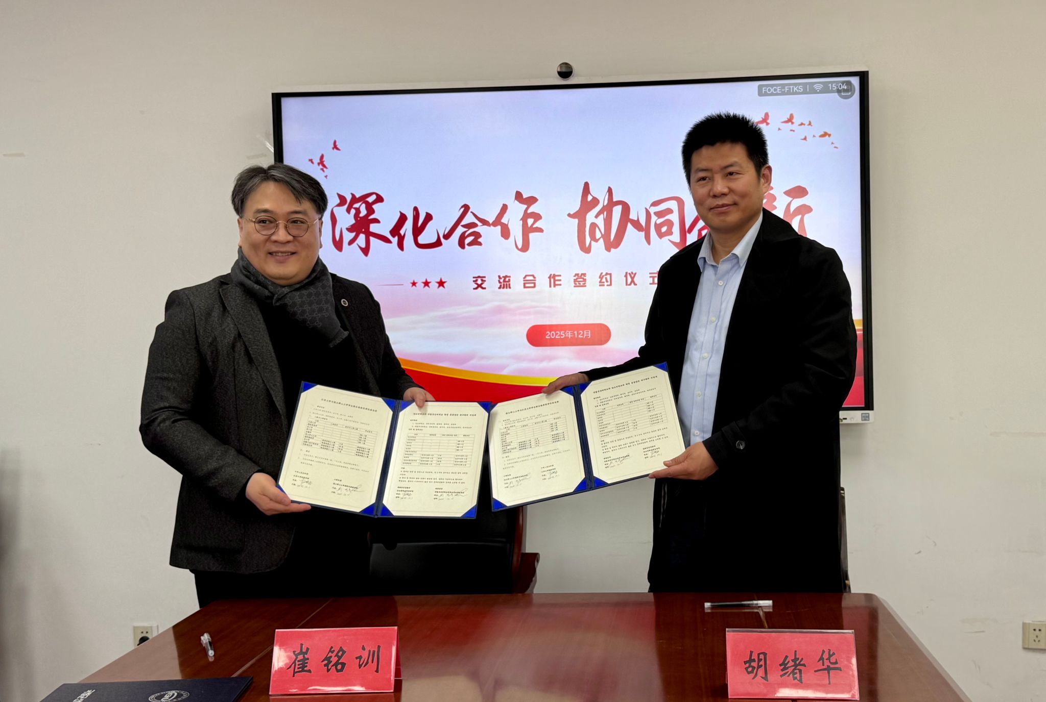 Witnessed by all attendees, Dean Hu Xuhua and Dean Choi Myeong-hoon formally signed the “Letter of Intent for Student Exchange between the School of Finance and Economics of Jiangsu University, People’s Republic of China, and the Institute of International Education of Kunsan National University, Republic of Korea” on behalf of their respective institutions. It was agreed that a joint working group would be established promptly to advance follow-up consultations on specific arrangements, including curriculum integration, student recruitment and selection, and management mechanisms, thereby facilitating the early implementation of the collaborative programs.