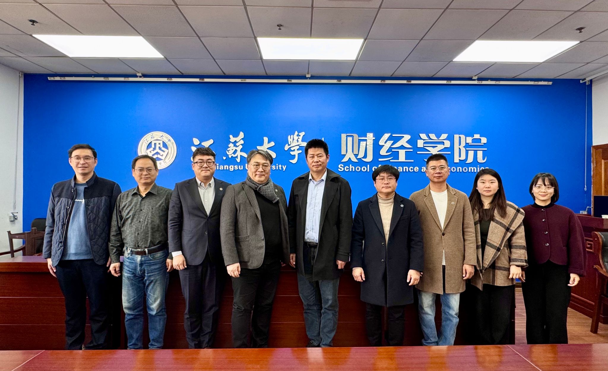 Attending the meeting from Kunsan National University were Professor Choi Myeong-hoon, Dean of the Institute of International Education; Professor Lee Jae-sik from the School of Music; and Mr. Kim In-kyun, Admissions Coordinator of the Institute of International Education. The Jiangsu University delegation included Professor Hu Xuhua, Dean of the School of Finance and Economics; Professor Yan Jun, Vice Dean; Professor Liu Qundong, Deputy Party Secretary and Vice Dean; Ms. Zhu Yanjie, Director of the International Education Office of the School of Finance and Economics; Ms. Zhang Xinyi, Section Chief of Cooperation and Exchange at the University’s International Office; and Ms. Chen Yushan, Director of the Belt and Road International Cooperation Office at the School of Overseas Education.