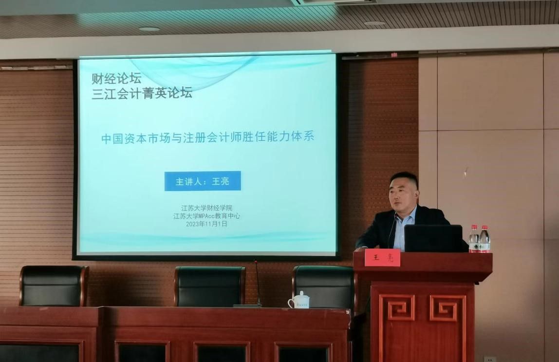 11月1日,信永中和会计师事务所厦门分所管理合伙人、上海分所副主任会计师,兼任上海市经济和信息化委员会专项资金评审专家、江苏大学会计硕士校外导师王亮先生做客江苏大学财经论坛,为我校MPAcc学生开设了主题为“中国资本市场与注册会计师胜任能力体系”的专题讲座,MPAcc教育中心百余名同学和老师参与了本次论坛。