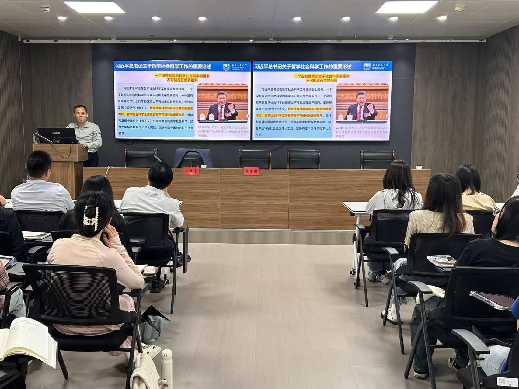6月4日上午,南京工业大学社会科学处处长、江苏省“333高层次人才培养工程”中青年学术技术带头人陈红喜教授,应财经学院邀请,在三江楼1301报告厅举行了题为“如何撰写决策咨询报告”的专题学术讲座。讲座由社科处处长杜建国主持。财经学院院长胡绪华、副院长李靠队,以及来自财经学院、管理学院等百余名师生参加了此次讲座。