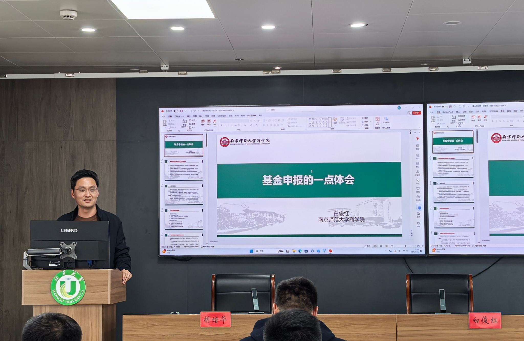 3月25日下午,南京师范大学商学院白俊红教授应财经学院邀请,在三江楼1301报告厅举行了题为“国家课题申报的一点体会”的专题讲座。此次讲座由财经学院院长胡绪华主持,财经学院全体师生参与了此次讲座。