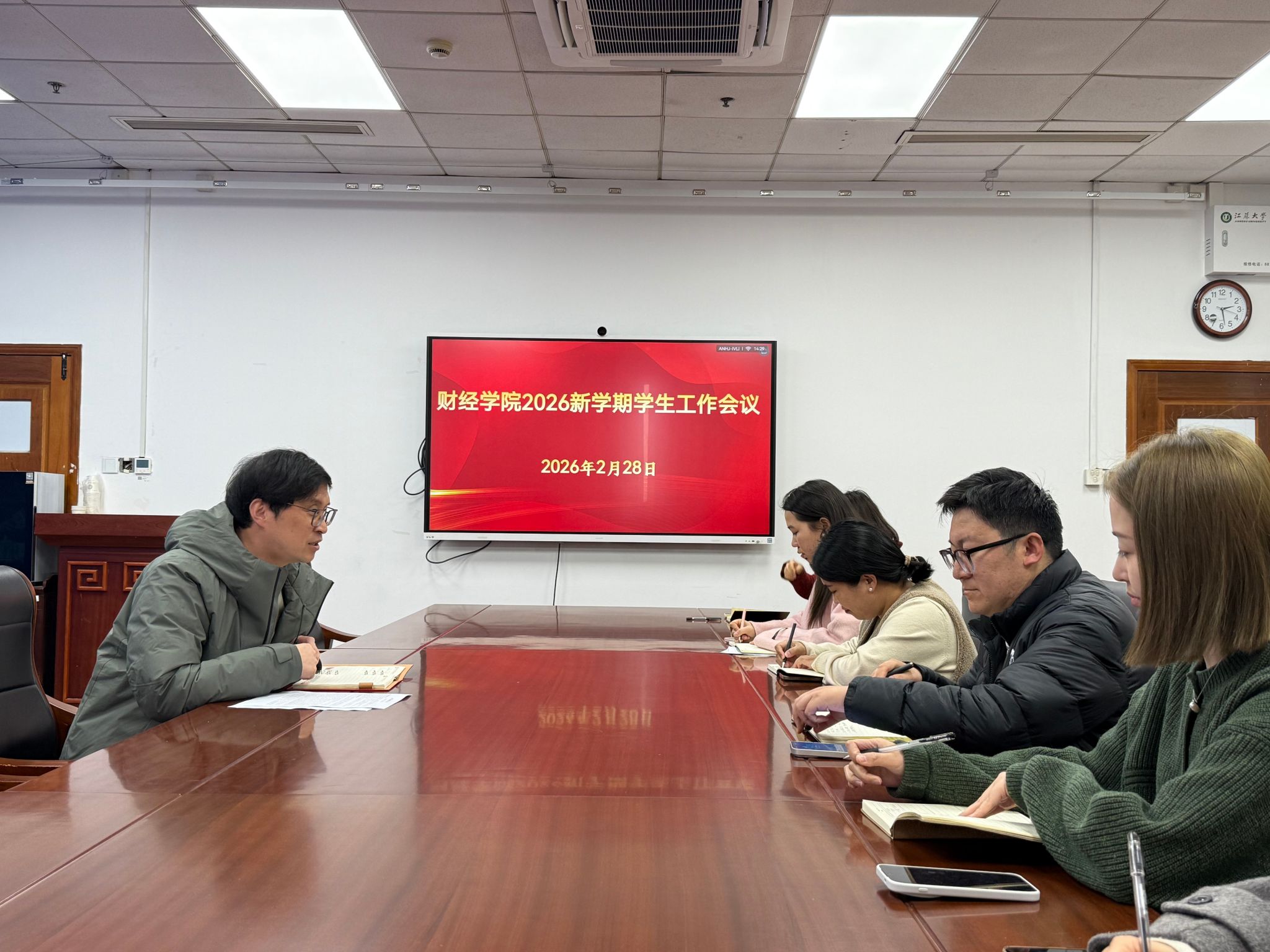2月28日,财经学院在1304D会议室召开2026年新学期学生工作会议,全面部署新学期学生教育与管理各项工作。学院党委副书记、副院长刘群东主持会议,全体辅导员参加。